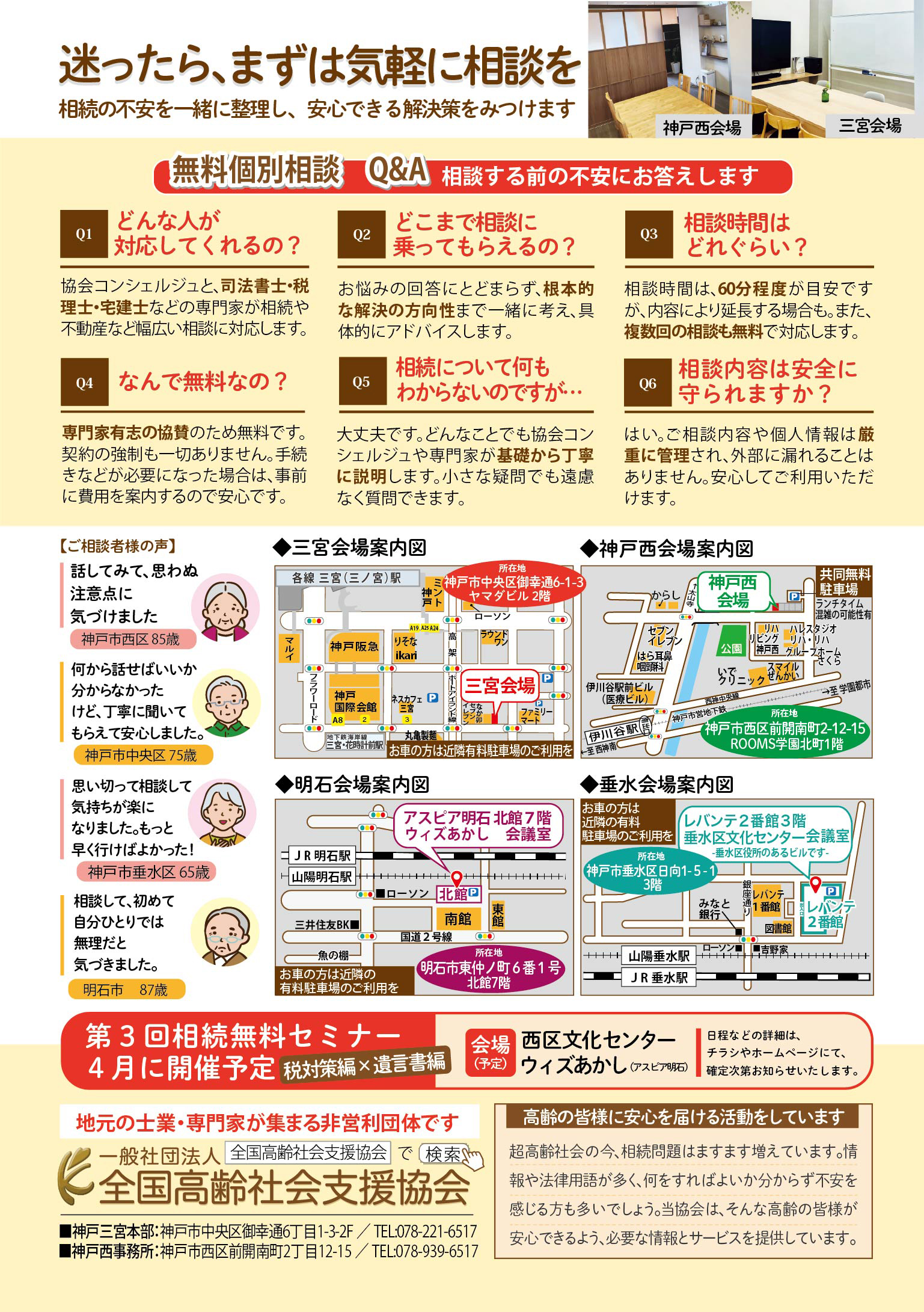 ▼無料個別相談のご案内(神戸市西区・垂水区・須磨区他にて配布しています)